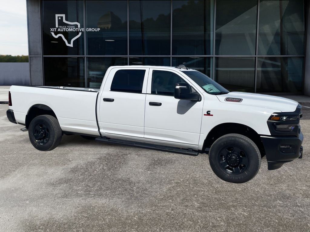 Cold Weather Group (Engine Block Heater and MOPAR Winter Front Grille Cover), Quick Order Package 24A Tradesman, Tradesman Level 1 Equipment Group (115-Volt Auxiliary Front Power Outlet, 12" Touchscreen Display, 2 Way Rear Headrest Seat, 4 Way Front Headrests, 40/20/40 Split Bench Seat, 400W Inverter, 4G LTE Wi-Fi Hot Spot, Air Conditioning ATC with Dual Zone Control, Alexa Built-in, Apple CarPlay, Auto-Dimming Rear-View Mirror, Black Exterior Mirrors, Carpet Floor Covering, Cloth 40/20/40 Bench Seat, Connected Travel and Traffic Services, Connectivity - US/Canada, Convenience Group, Disassociated Touchscreen Display, Emergency Vehicle Alert System (EVAS), Exterior 115V AC Outlet, Exterior Mirrors Courtesy Lamps, Exterior Mirrors with Heating Element, Exterior Mirrors with Supplemental Signals, For Details Visit DriveUconnect.com, For More Info, Call 800-643-2112, Front and Rear Floor Mats, Front Armrest with Cupholders, Global Telematics Box Module, Google Android Auto, GPS Antenna Input, GPS Navigation, HD Radio, Integrated Voice Command with Bluetooth, Manual Adjust 4-Way Driver Seat, Manual Adjust 4-Way Front Passenger Seat, Manual Folding Exterior Mirrors, Manual Telescoping Mirrors, Mirror Running Lights, Mopar Black Tubular Side Steps, Off-Road Information Pages, ParkSense Front/Rear Park Assist System, Power Adjust Mirrors, Power Heat Fold Telescopic Mirrors, Power-Adjustable Convex Aux Mirrors, Radio: Uconnect 5 Navigation with 12.0" Display, Rear Folding Seat, Rear Power Sliding Window, Remote USB Port - Charge Only, Selectable Tire Fill Alert, SiriusXM Radio Service, SiriusXM with 360L, Storage Tray, Tinted Acoustic Windshield Glass, and Trailer Tow Pages), 4-Wheel Disc Brakes, 50 Gallon Fuel Tank, 6 Speakers, ABS brakes, Add Back Vinyl Seat, Air Conditioning, AM/FM radio: SiriusXM, Apple CarPlay/Android Auto, Black Wheel Center Hub, Brake assist, Clearance Lamps, Compass, Dash Pass Thru Wire Circuits, Delay-off headlights, Driver door bin, Dual front impact airbags, Dual front side impact airbags, Electronic Stability Control, Front anti-roll bar, Front Center Armrest w/Storage, Front fog lights, Front License Plate Bracket, Front reading lights, Fully automatic headlights, Illuminated entry, Instrument Panel Mounted Auxiliary Switches, Low tire pressure warning, Occupant sensing airbag, Outside temperature display, Overhead airbag, Overhead console, Panic alarm, ParkView Rear Back-Up Camera, Passenger door bin, Passenger vanity mirror, Power steering, Power windows, Radio data system, Radio: Uconnect 5 with 8.4" Display, Rear step bumper, Rear window defroster, Remote keyless entry, Speed control, Tachometer, Tilt steering wheel, Traction control, Variably intermittent wipers, Voltmeter, and Wheels: 18" x 8.0" Black Painted SteeL.